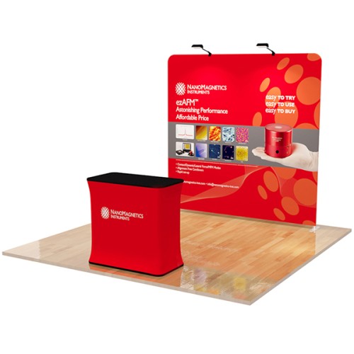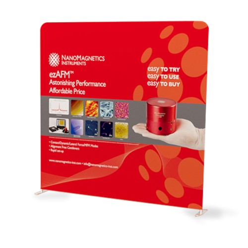Ce présentoir est fait d'un aluminium léger et durable. L'installation se fait en quelques minutes. Une fois la structure assemblée, il ne vous restera qu'à la glisser à l'intérieur de la pochette graphique extensible, et de la refermer avec sa fermeture éclair.